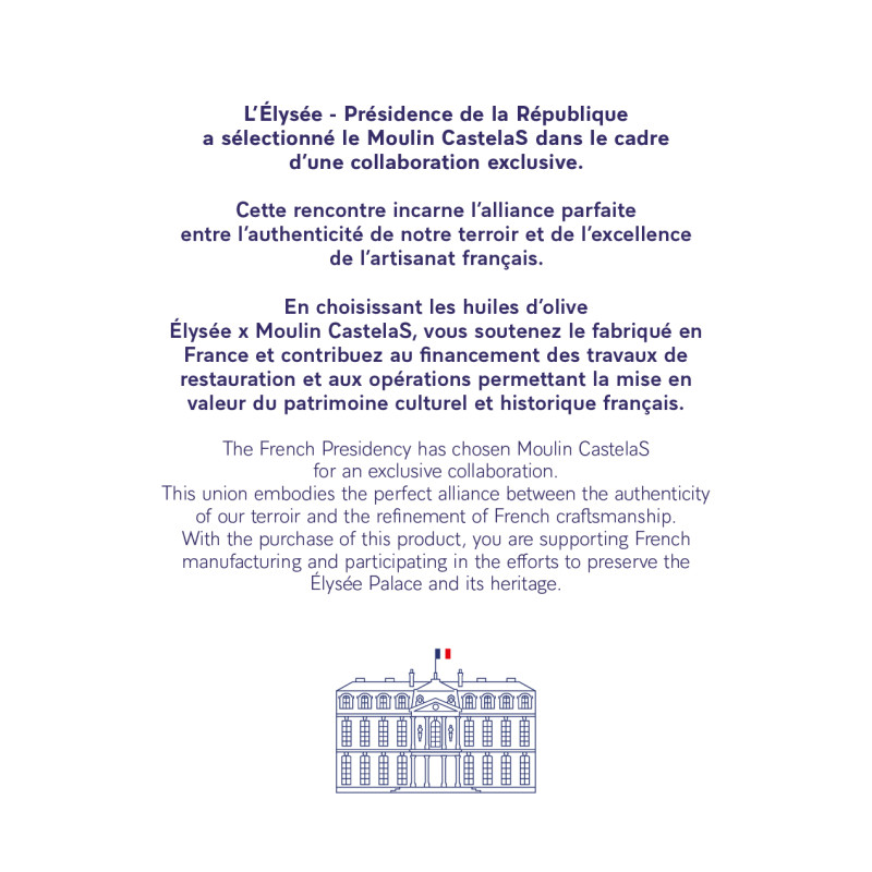 Moulin CastelaS kooperiert mit dem Élysée - Präsidialamt der Republik im Rahmen einer exklusiven Zusammenarbeit.