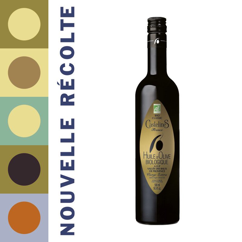 „Classic Bio Fruité Vert“ (Klassisch-fruchtiges grünes Bio-Olivenöl), extranatives Olivenöl, geschützte Herkunft aus dem Tal der „Baux de Provence“) Flasche 500ml