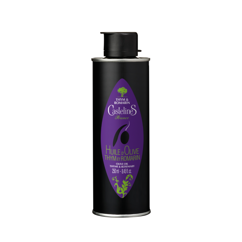 Dieses Öl aus die Mühle CastelaS verlieht Ihren herzhaften und süßen Gerichten einen Hauch von Provence. Der frisch gepflückte Thymian und Rosmarin werden mit neuen Oliven vermengt, um ein Öl mit dem authentischen Geschmack von Kräutern der Provence zu erhalten.