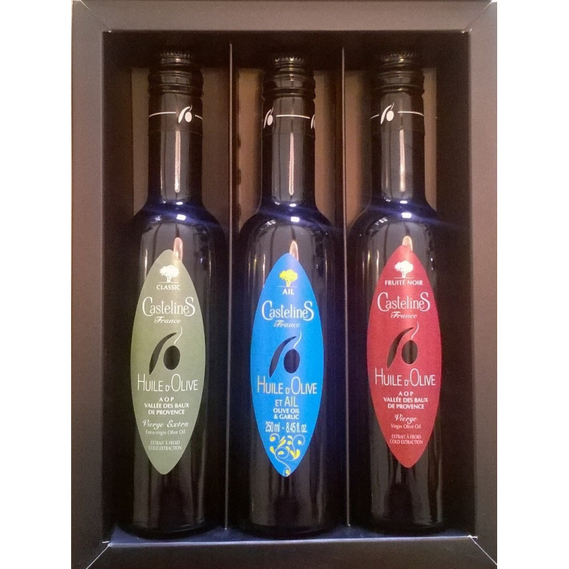 Kasten 3 Flaschen 250ml CLASSIC, NOIR D'OLIVE, KNOBLAUCH