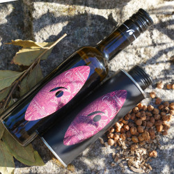 Es handelt sich um ein geschmacklich gewagtes Öl. Probieren Sie es, um es kennenzulernen, zunächst pur, auf römische Art und Weise, auf Linsen, auf Kichererbsen. Lassen Sie sich danach in ein anderes Zeitalter entführen. Es wird einmal im Jahr, im November, hergestellt, indem man die Oliven aus unseren Hainen mit frisch gepflückten Lorbeerblättern sowie Zyperngras- und Alant-Wurzeln vermengt. Zyperngras und Alant sind zwei Pflanzen, die im Mittelmeerraum wachsen. Zyperngras mit seinen milden, nahezu süßen Aromen bereichert diese kulinarische Mischung mit einem Hauch von Mandel und Kastanie. Alant wiederum steuert ausgeprägtere, anisartige Aromen bei mit einem Hauch Fenchel. Die Verbindung dieser Geschmacksnuancen ist einfach erstaunlich.