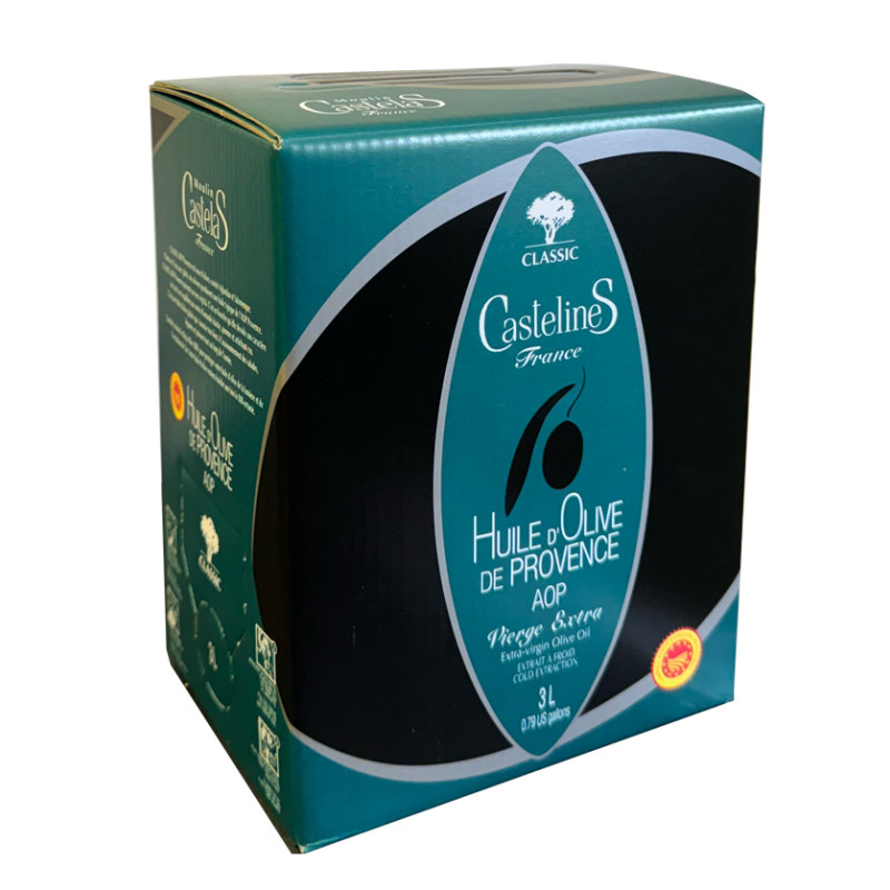 „Classic Fruité Vert“ (Klassisch-fruchtiges grünes Olivenöl), extranatives Olivenöl aus der Provence (geschützte Herkunftsbezeichnung) Bag in box 3L mit dem Hahn