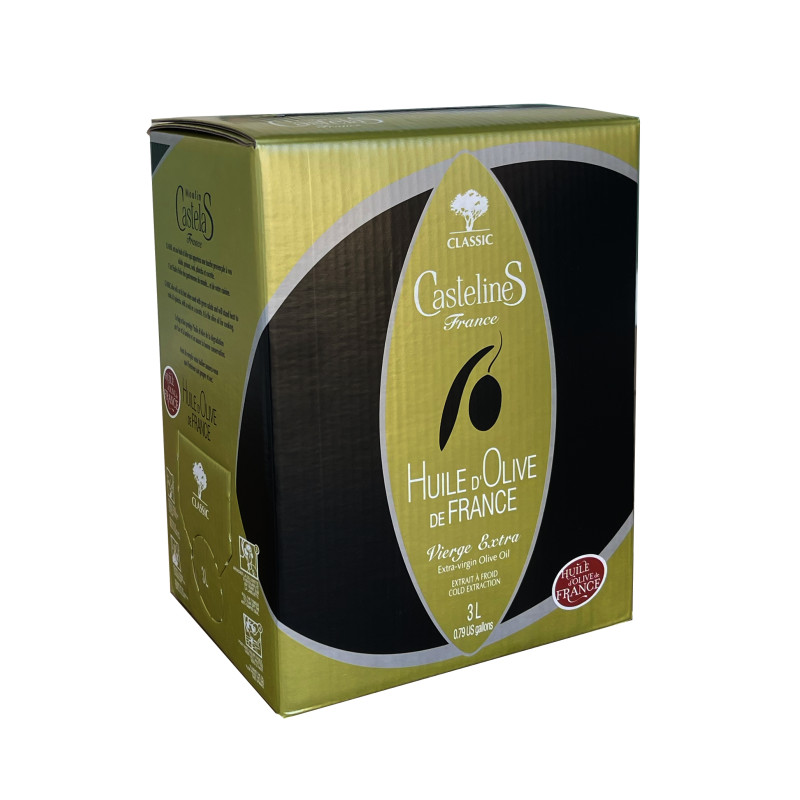 „Noir d’Olive“ – „Schwarzes von der Olive“ (vormals „Fruchtig Schwarzes“): natives Olivenöl aus Frankreich , Flasche 500ml mit einem integrierter Ausgießer
