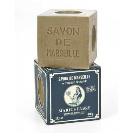 Cube de savon de Marseille blanc pour le linge, 400g