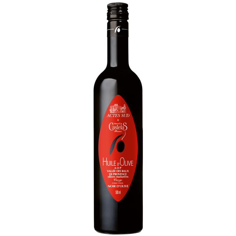 Actes Sud x NOIR D'OLIVE BIO olives maturées, Huile d'Olive Biologique Vierge AOP Vallée des Baux de Provence, Bouteille 500ml