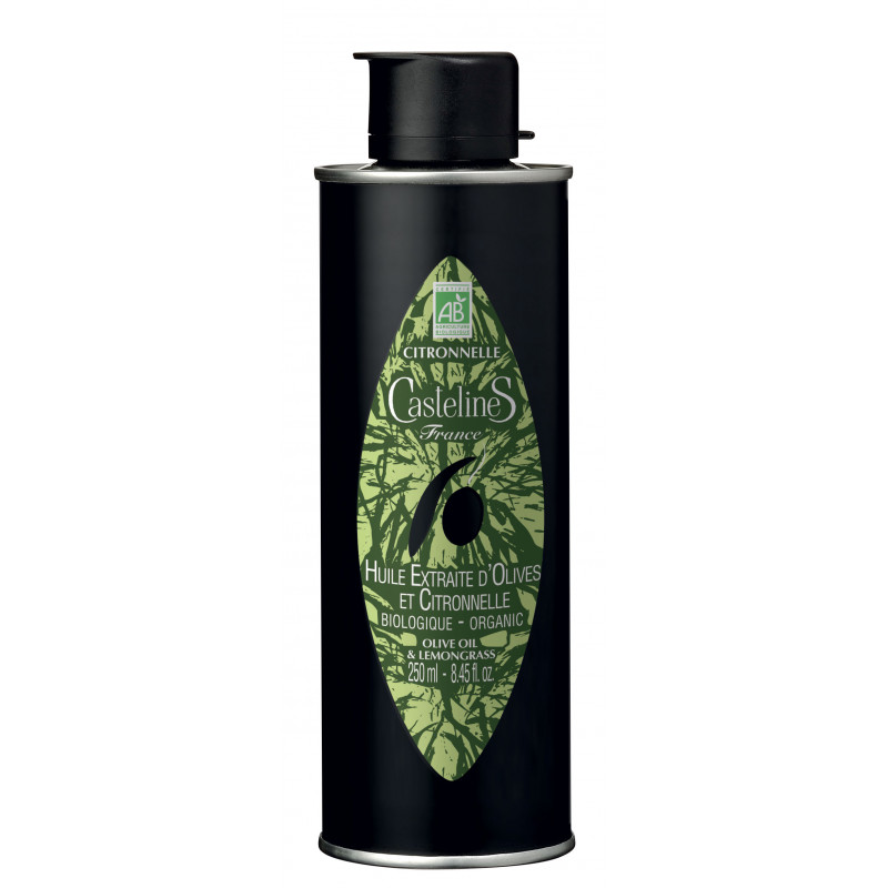 Huile extraite d'Olives et Citronnelle, Biologique, bidon 250ml